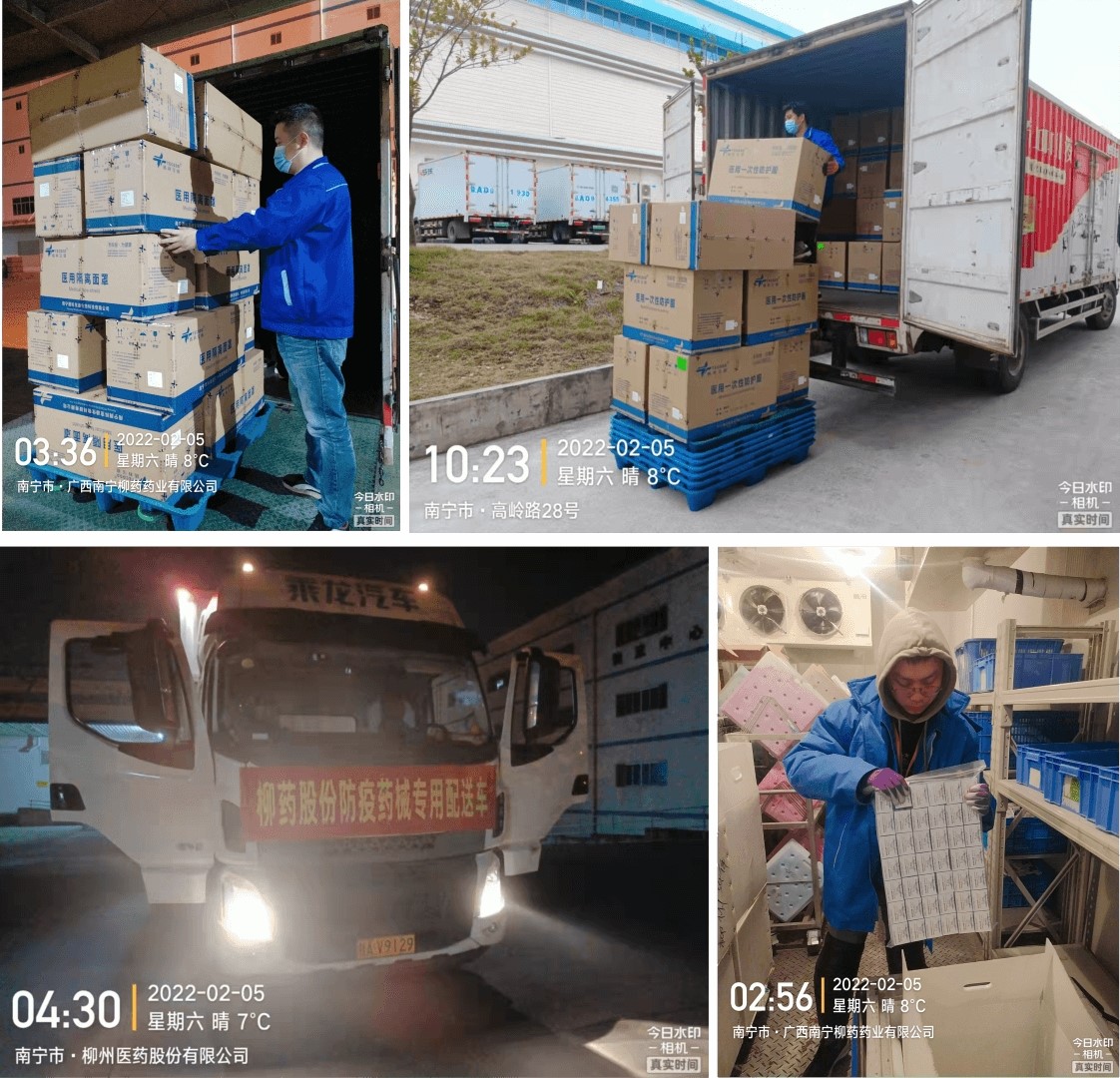 除物资支援帮助外,公司加强在人力上的调配支持,增加就近仓储的管理人员、物流人员、货运司机数量,全力支持完成供应保障任务。尤其负责运送物资的货运司机,自2月4日首批物资的发出,至今已连续作战十余天。他们冒着被感染的风险,奔波于百色市及各县,有的县份如隆林、靖西、西林等,地处偏远,有的尚未有高速直通,加之春节期间冬雨连绵,往返路程、装卸就要耗费一天时间。此外由于出入高风险地区,他们的健康码由绿变红,生活上带来诸多不便,也承受着外界的巨大压力。但他们排除万难、迎难而上,争分夺秒完成运输任务,充分展现了柳药人的责任与担当。