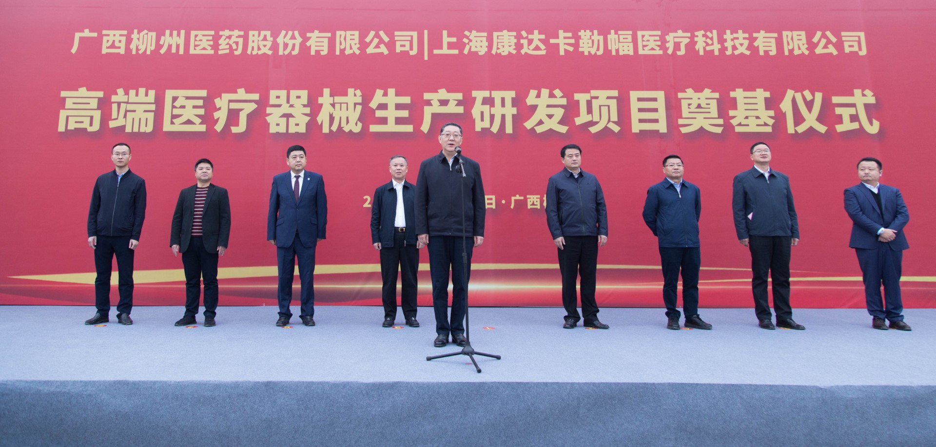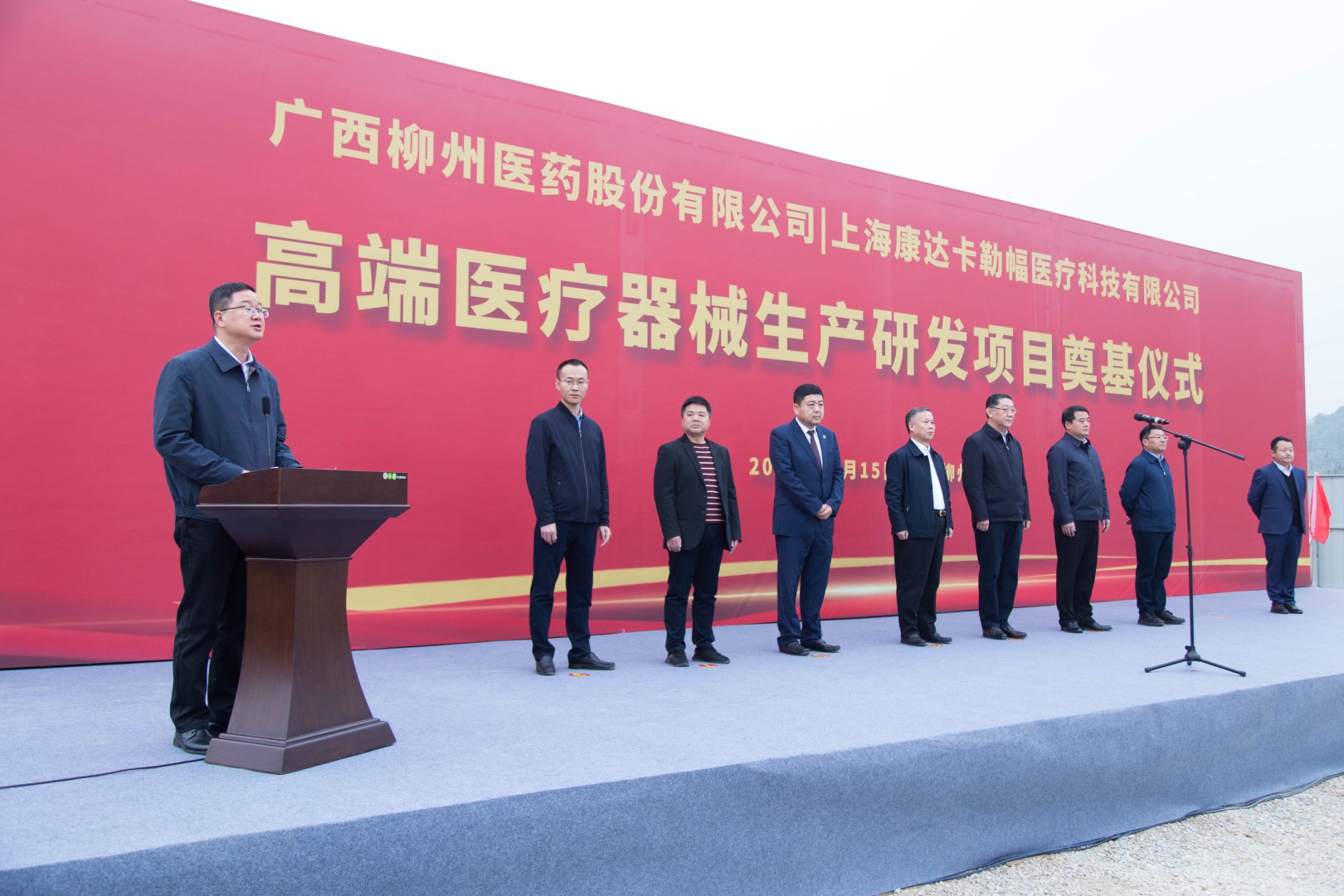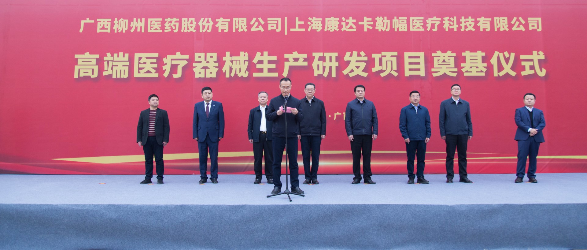 12月15日上午,广西柳州医药股份有限公司-上海康达卡勒幅医疗科技有限公司高端医疗器械生产研发项目在洛维工业集中区奠基开工。柳州市委副书记、市长张壮,副市长汤振国,秘书长刘伯臣,上海康达卡勒幅董事长林海,公司董事长朱朝阳,广西康达卡勒幅总经理祁俊等出席活动。