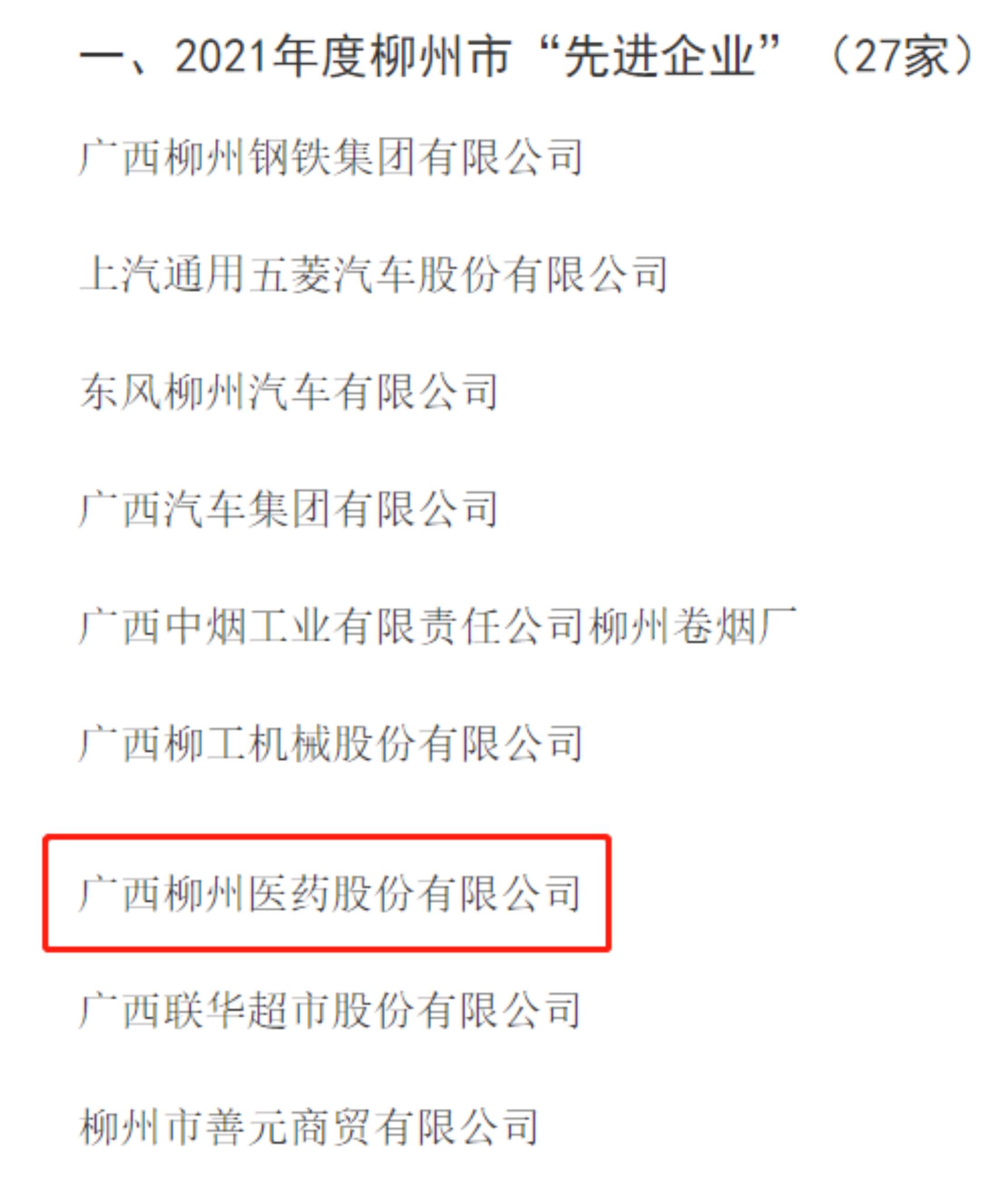 柳药股份获评2021年度柳州市“先进企业”;