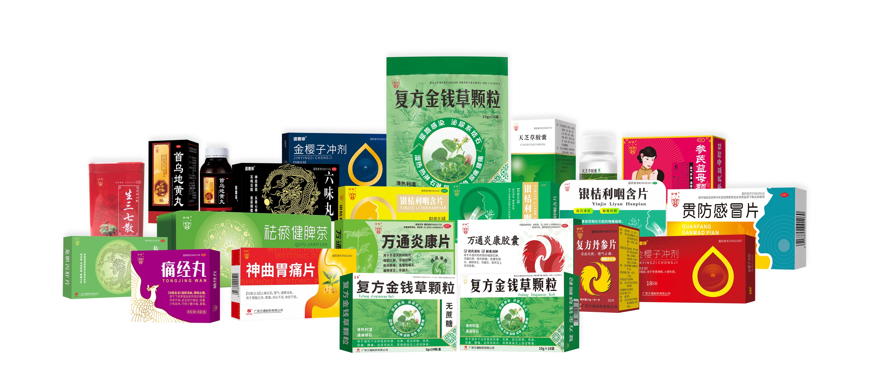公司旗下万通制药是广西著名中成药生产企业、国家高新技术企业、国家民委认定的少数民族特需商品定点生产企业,拥有复方金钱草颗粒、万通炎康片等全国独家品种。万通制药持续加大在产品适应症拓展研究和新产品开发力度,不仅推出了适合糖尿病人的无糖型产品,还培育了天芝草胶囊、祛瘀健脾茶、六味丸等一批民族药产品。康晟制药依托广西医科大学资源和技术优势开展现代药品生产研发和院内制剂生产业务,旗下拥有安神养血口服液、归芪补血口服液等本土特色知名产品。这些产品挖掘于广西壮瑶等民族组方,疗效确切,是凝聚着广西民族特色的地方优质产品。