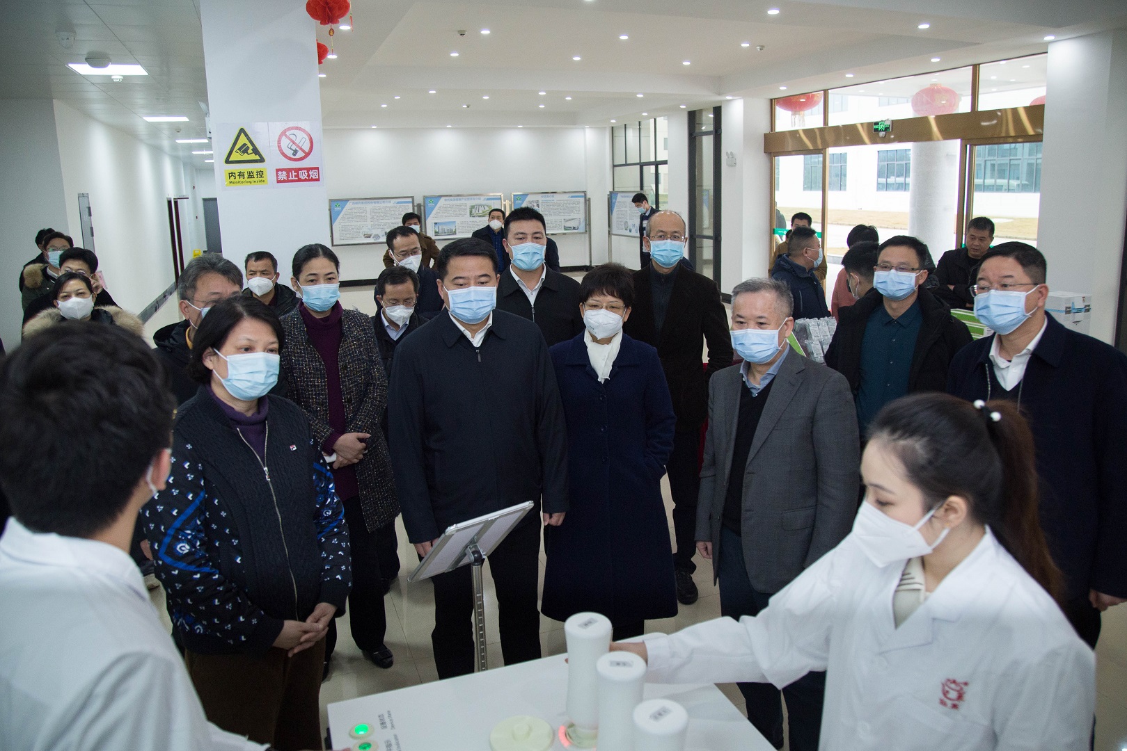 与会人员首先走进仙茱制药中药配方颗粒生产车间、智能监控中心、包装车间,实地了解企业生产经营情况。