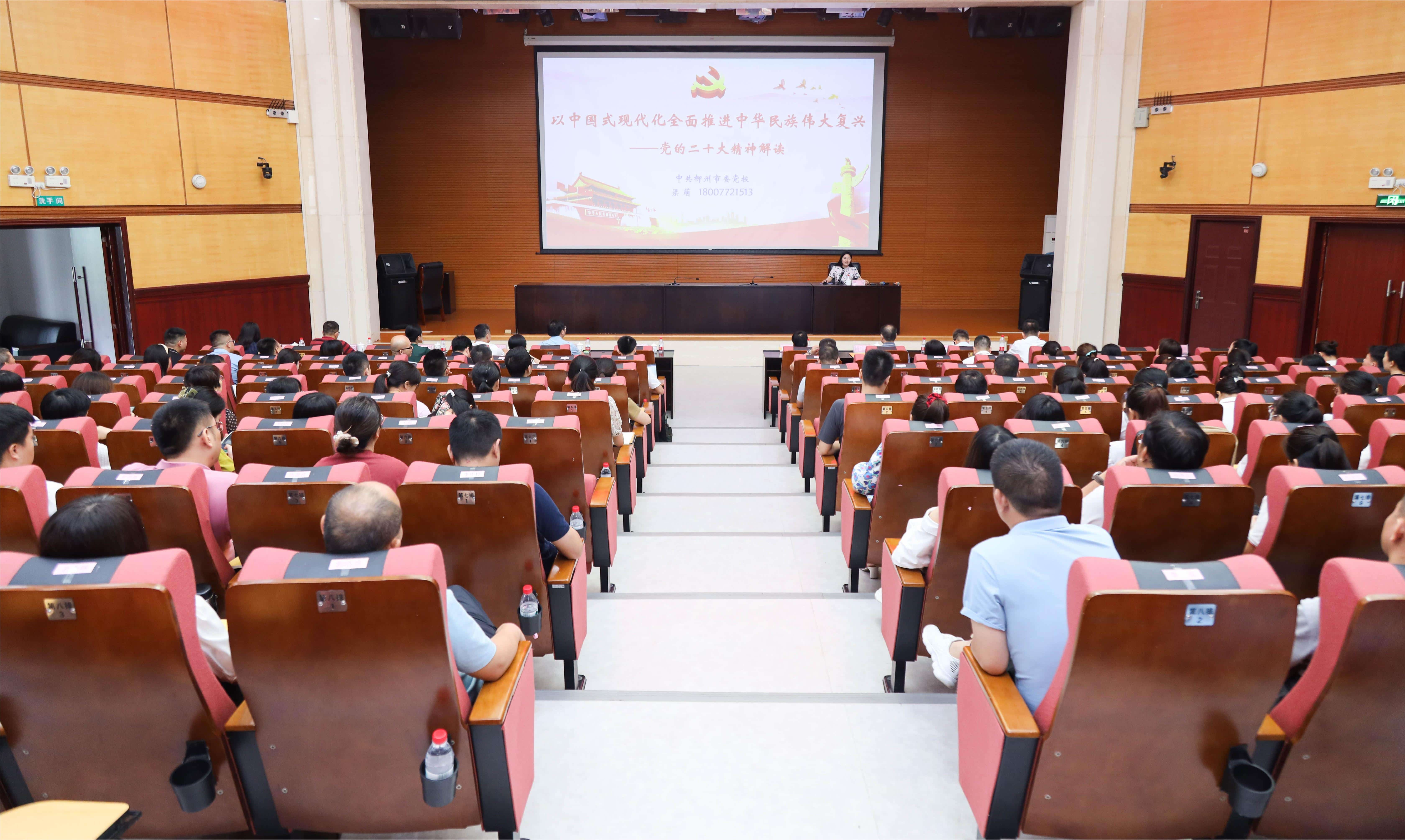 此次党建活动邀请了中共柳州市委党校副教授梁萌进行授课。梁萌副教授以《以中国式现代化全面推进中华民族伟大复兴——党的二十大精神解读》为题,从大会现实基础、理论指导、使命任务、战略部署等四个方面展开讲述,并着重介绍了中国式现代化的显著特征、丰富内涵和本质要求。