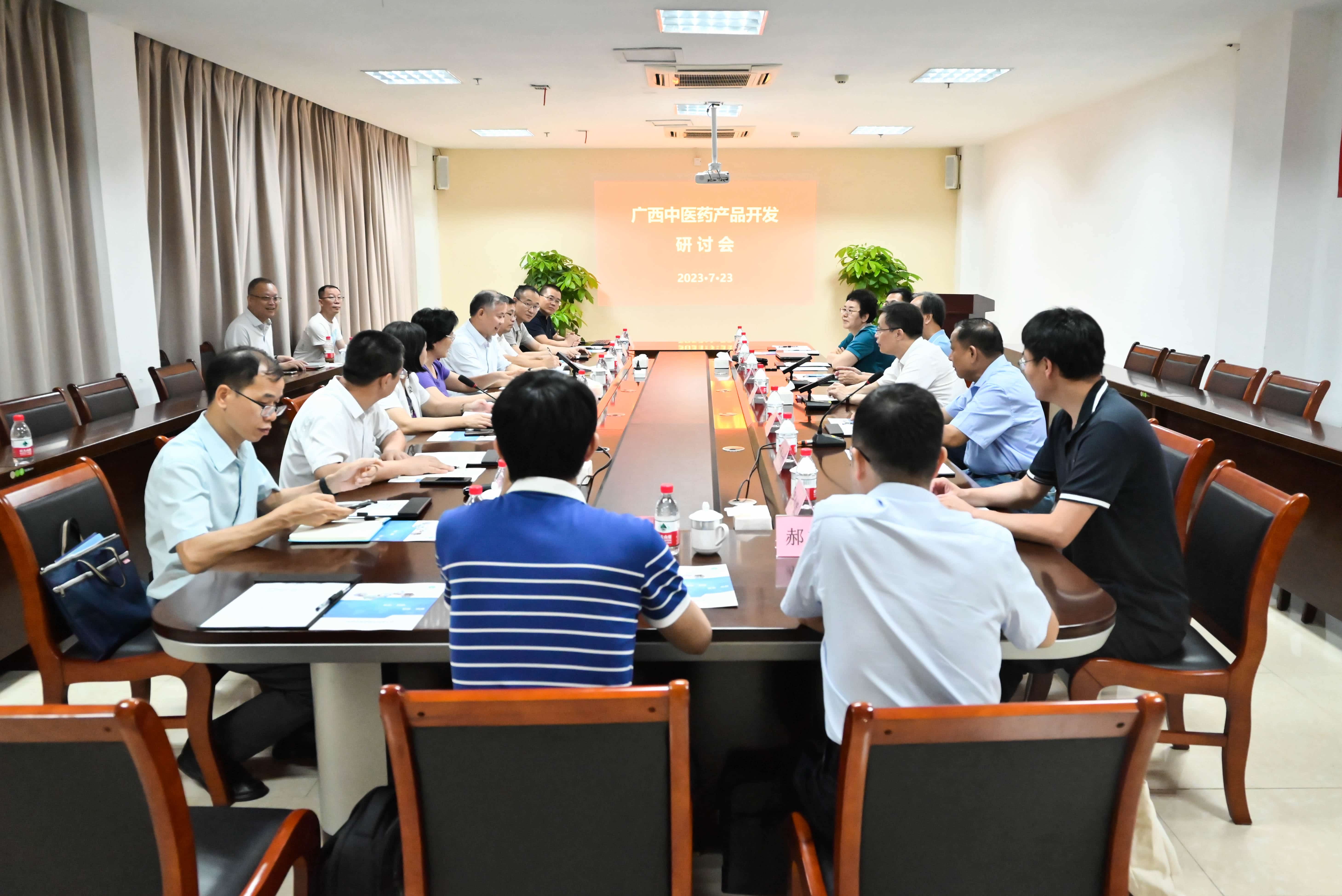 7月23日上午,广西中医药产品开发研讨会在柳药集团南宁产业园举行,国家中医药管理局副局长、中国中医科学院院长、中国工程院院士黄璐琦,原自治区政协副主席磨长英,广西中医药大学党委副书记、校长姚春等多名行业内专家学者及柳药集团董事长、总裁朱朝阳,集团工业板块主要负责人等出席此次研讨会。